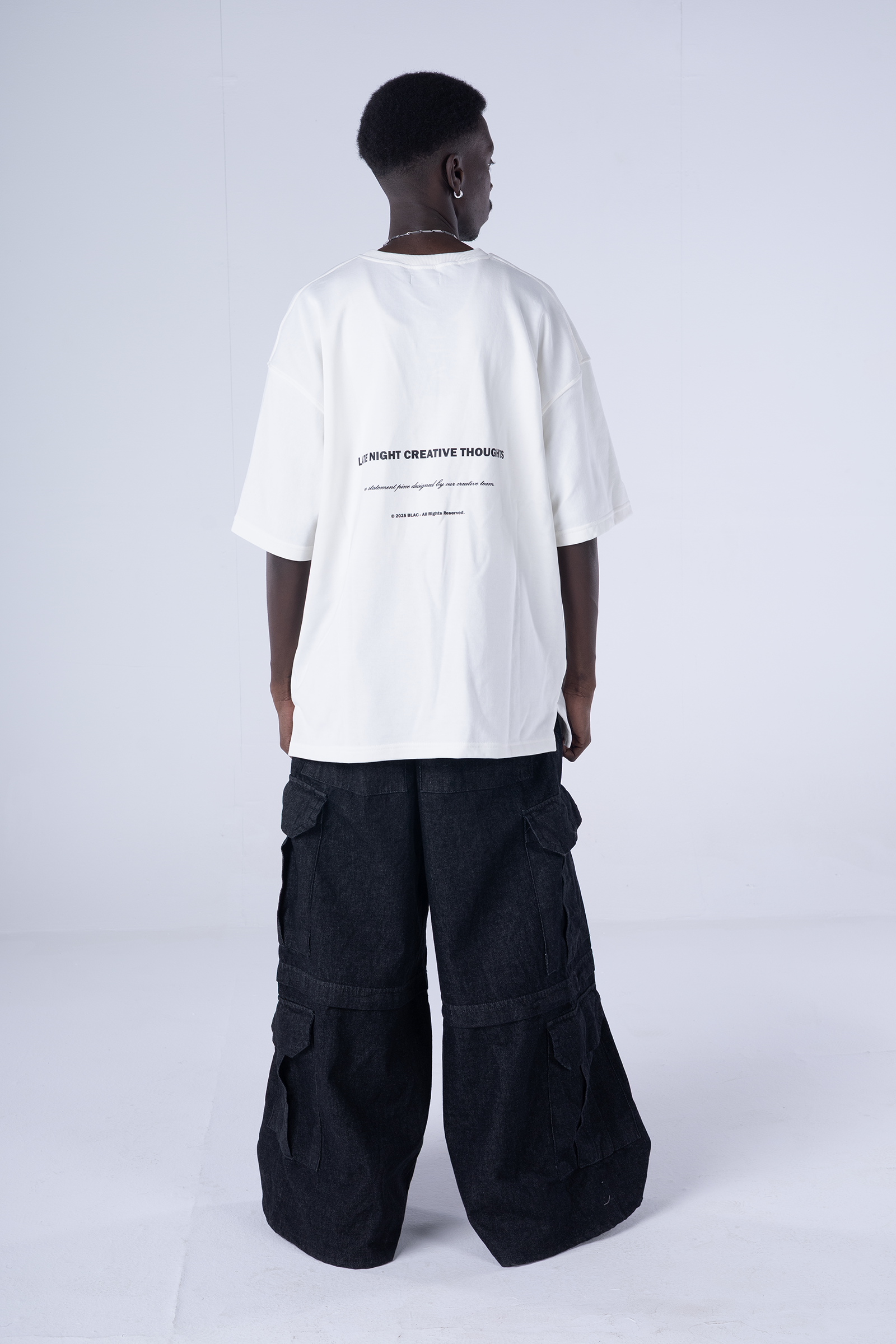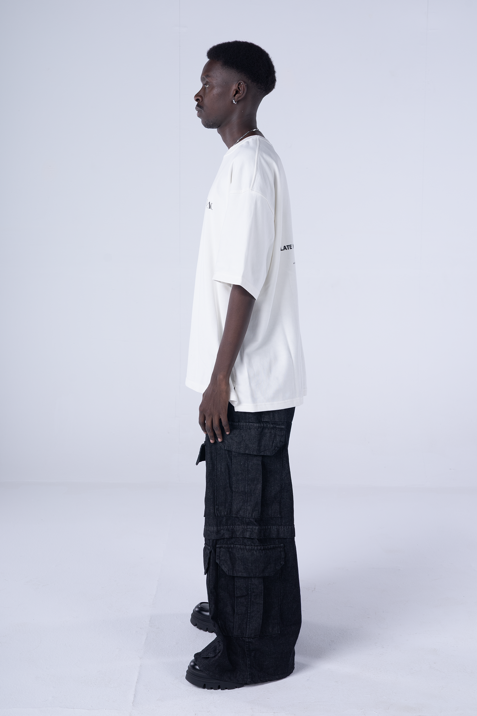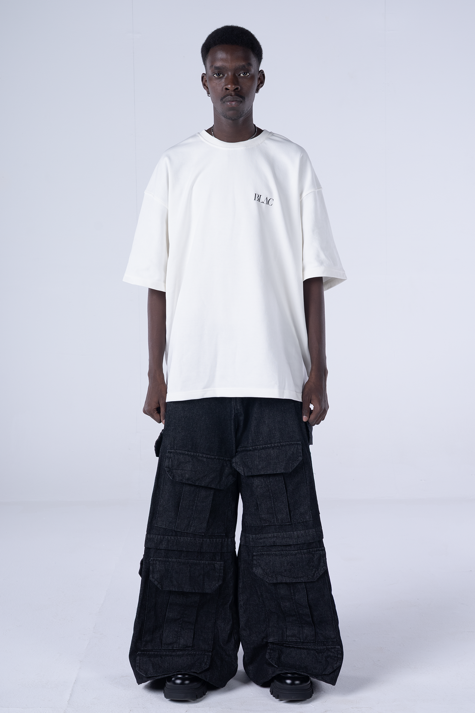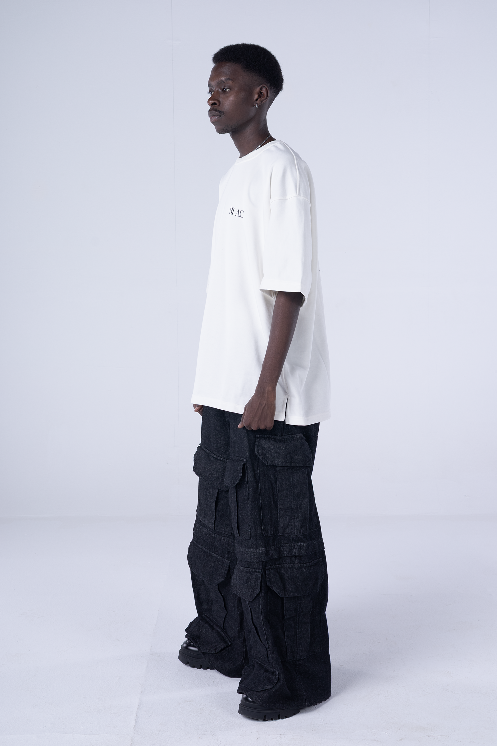 Washed Multi-Pocket Wide Leg Cargo Jeans - Black