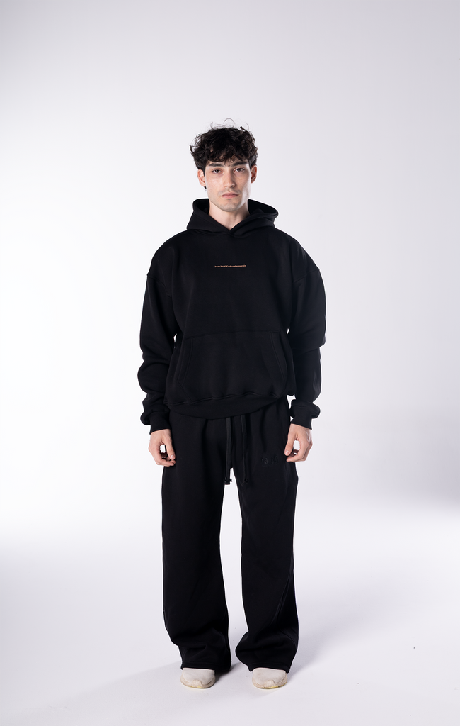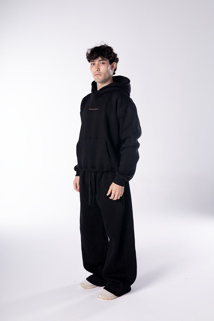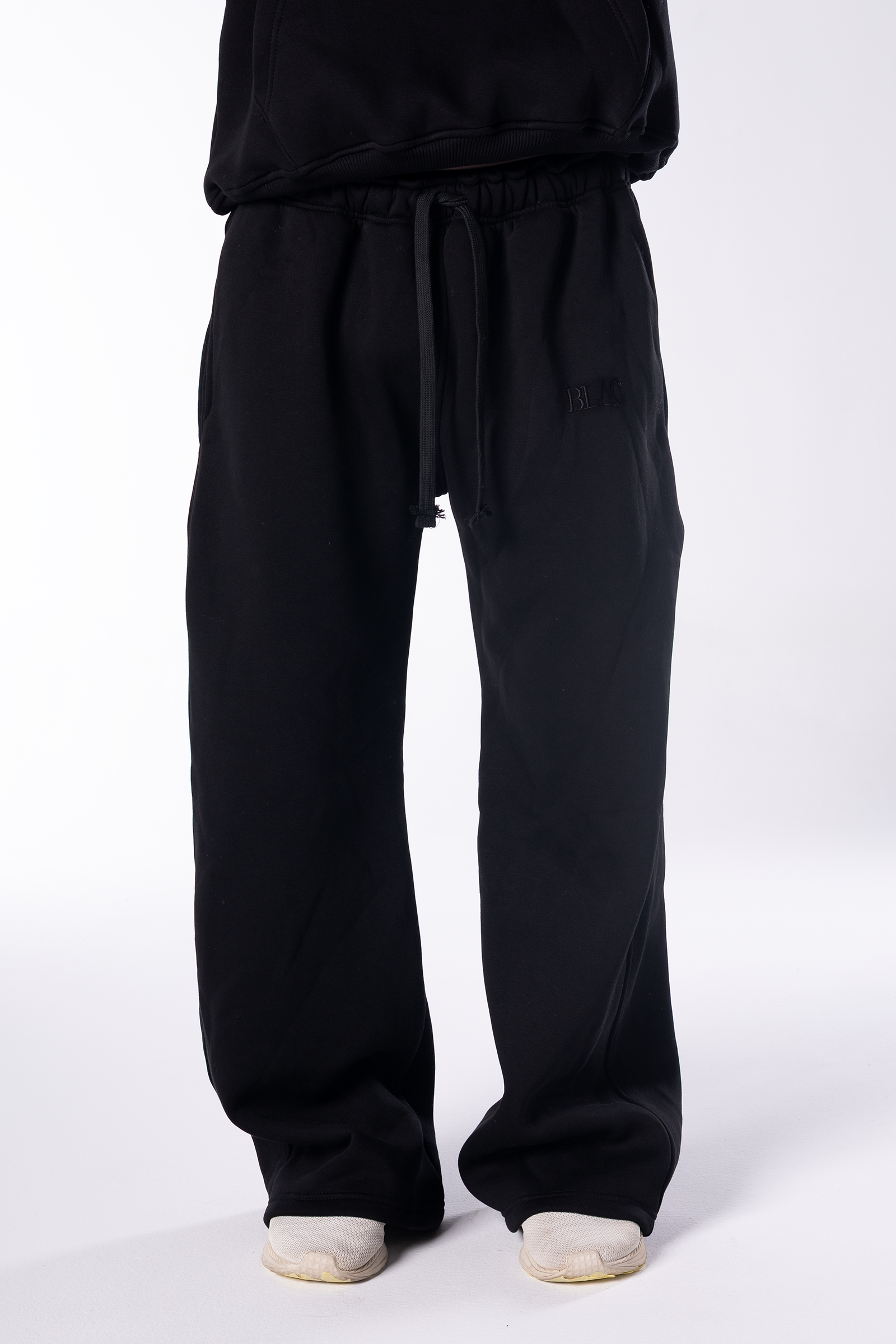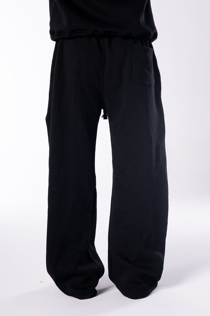 Embroidered Logo Wide Leg Sweatpants - Black