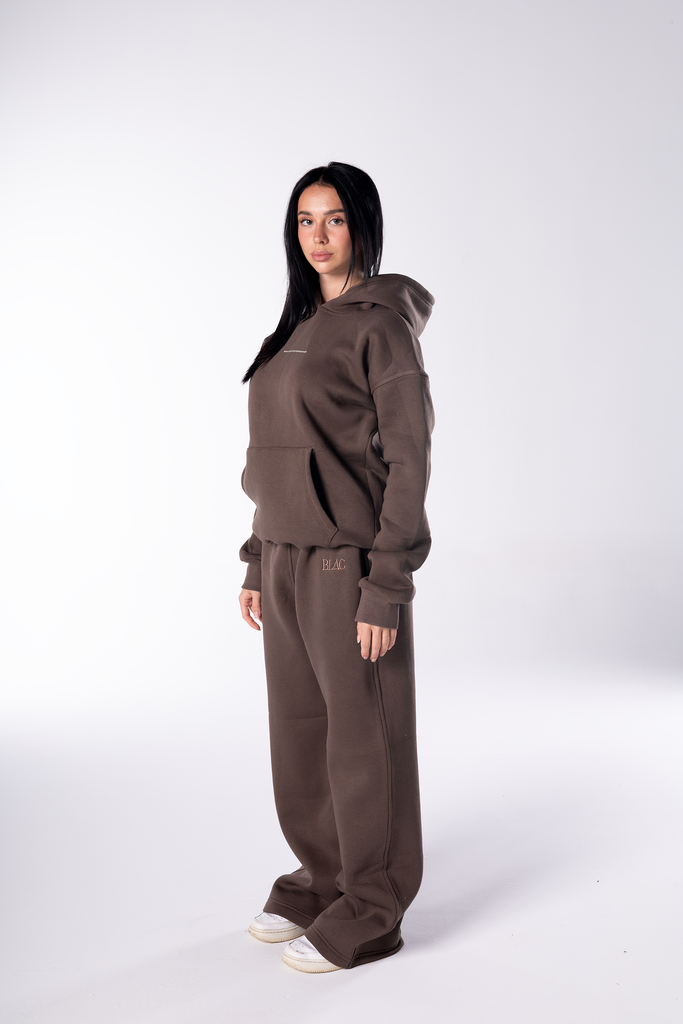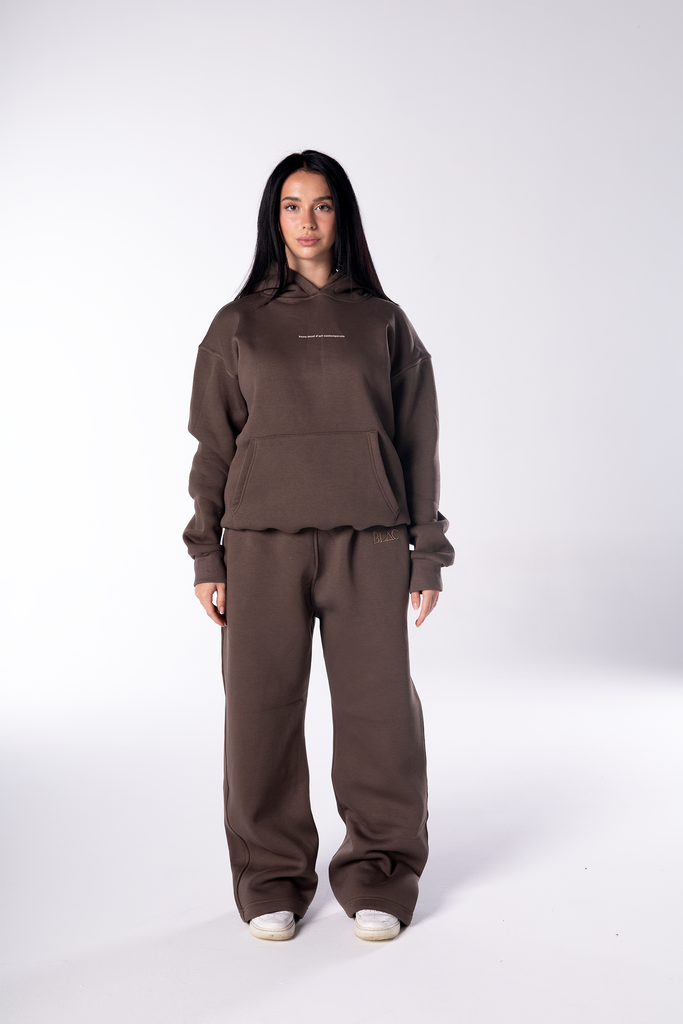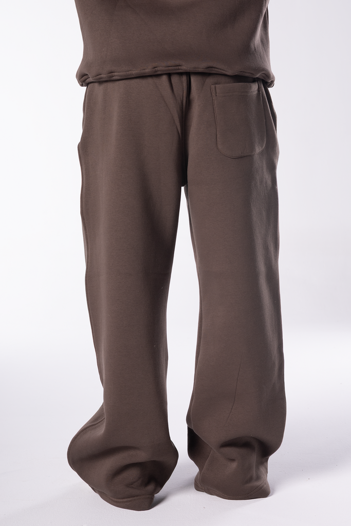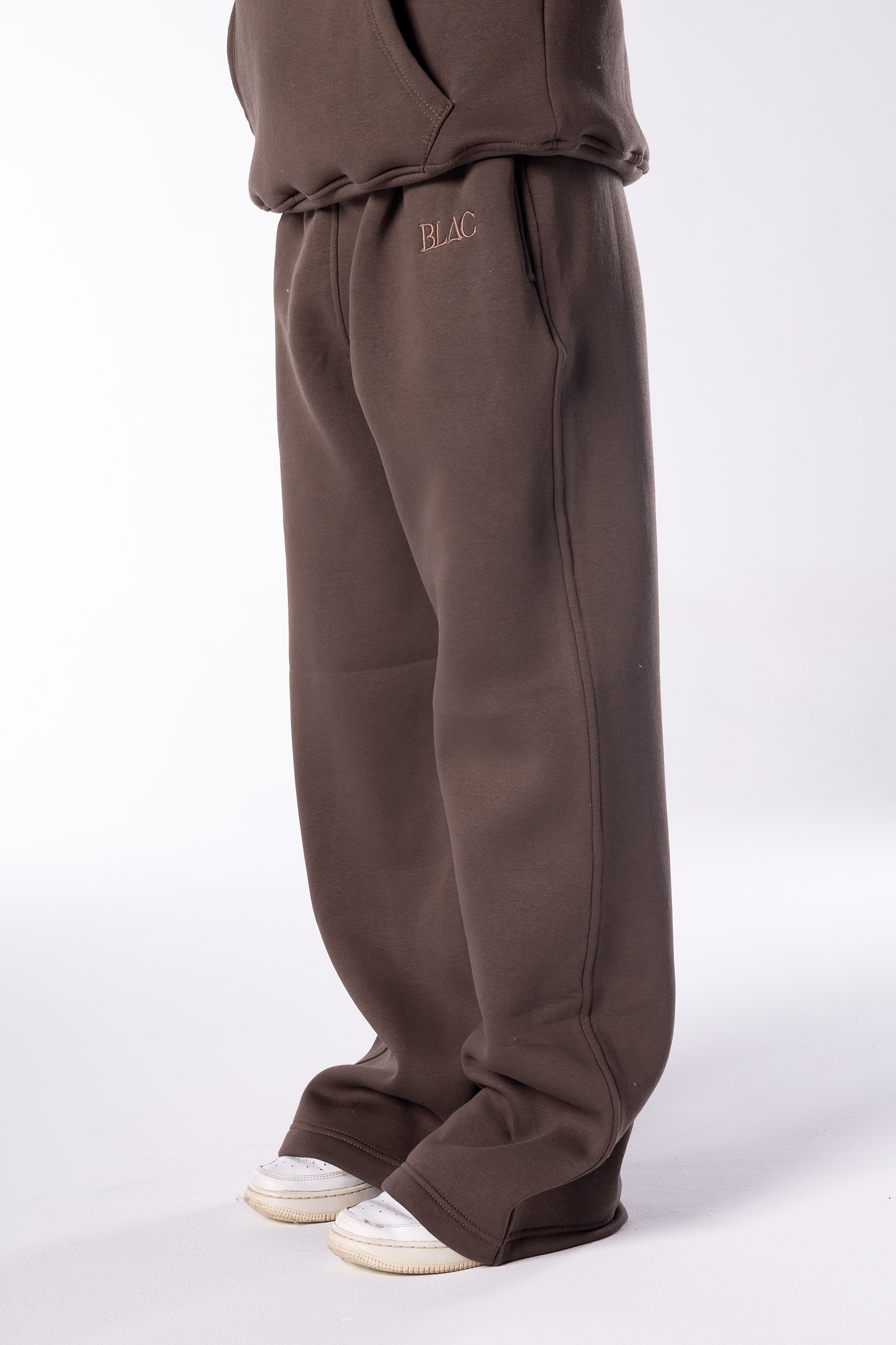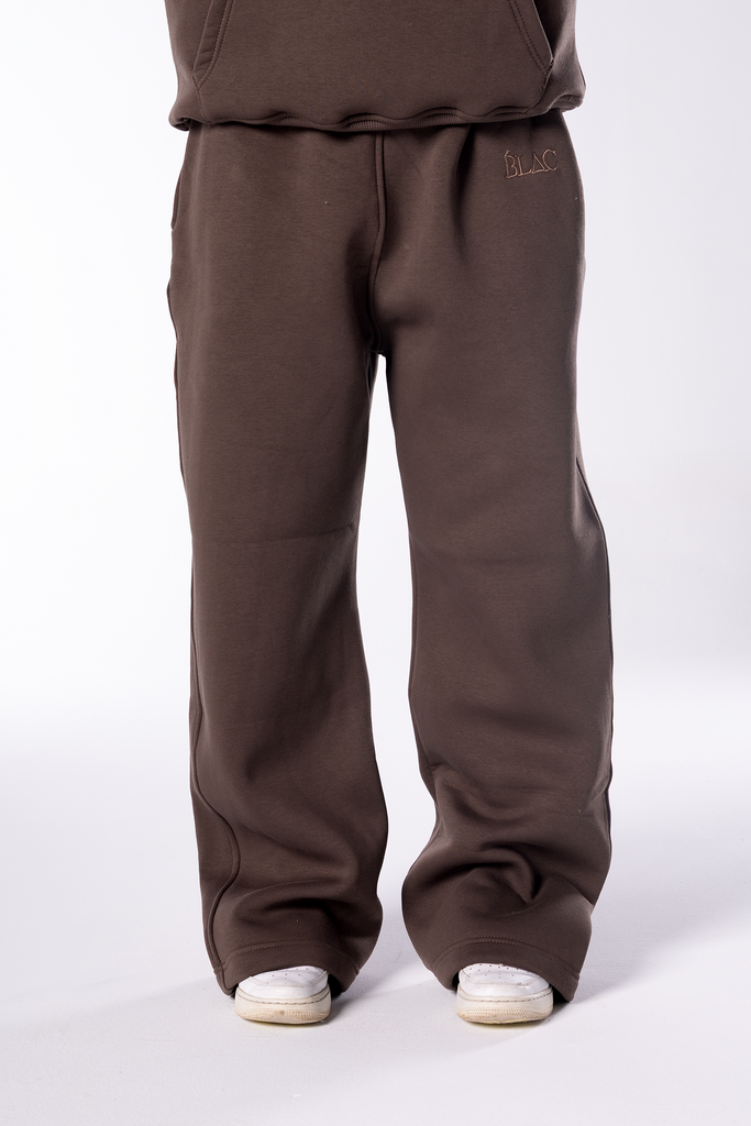 Embroidered Logo Wide Leg Sweatpants - Coffee