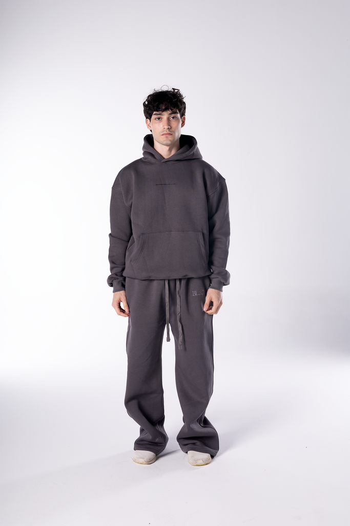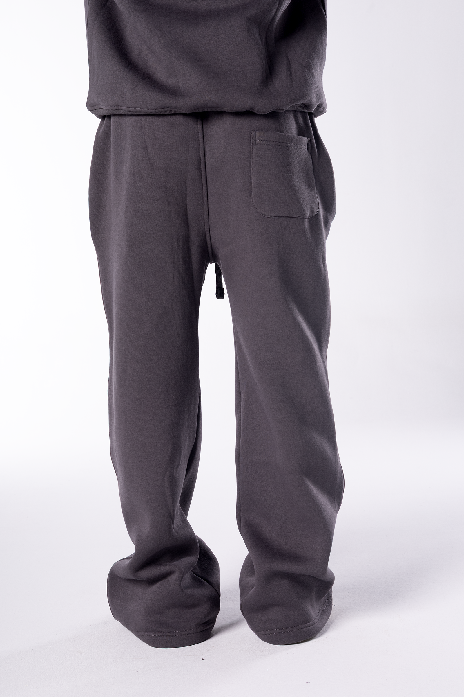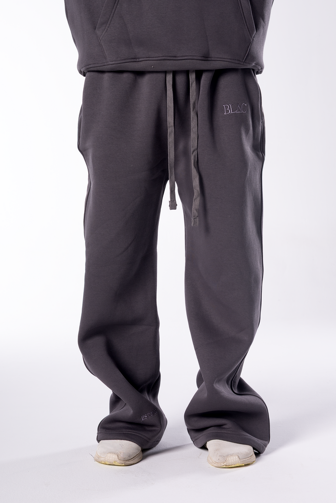 Embroidered Logo Wide Leg Sweatpants - Dark Grey