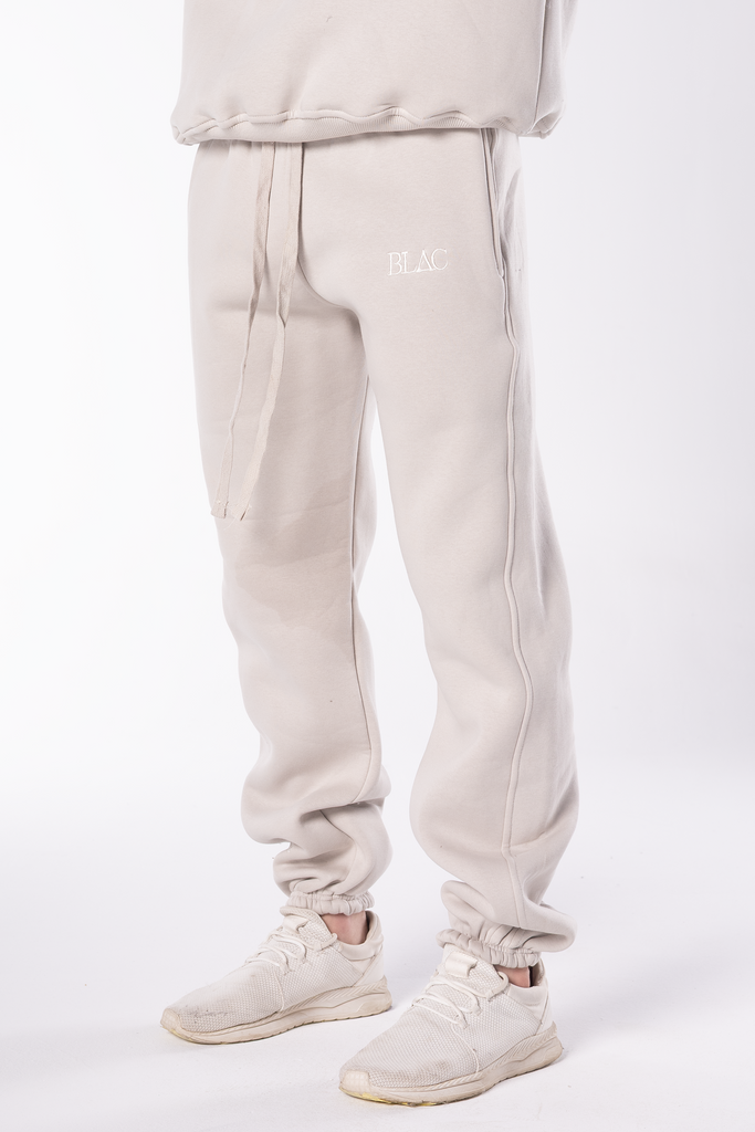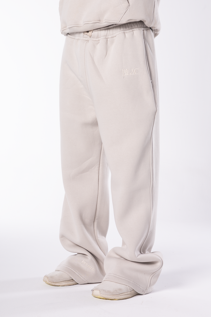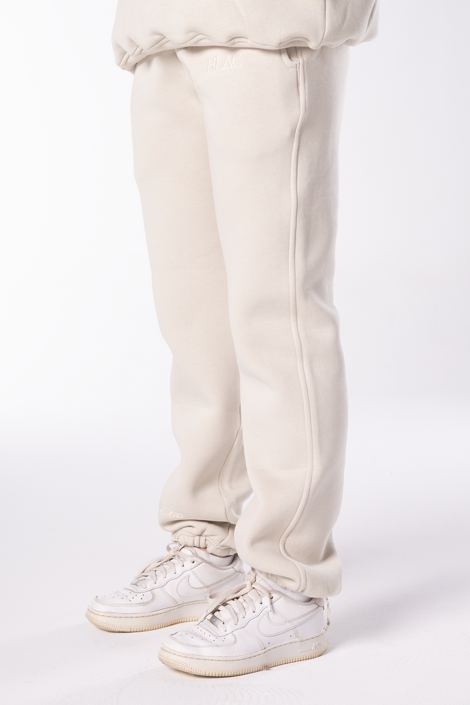Embroidered Logo Straight Leg Sweatpants - Creamy Beige